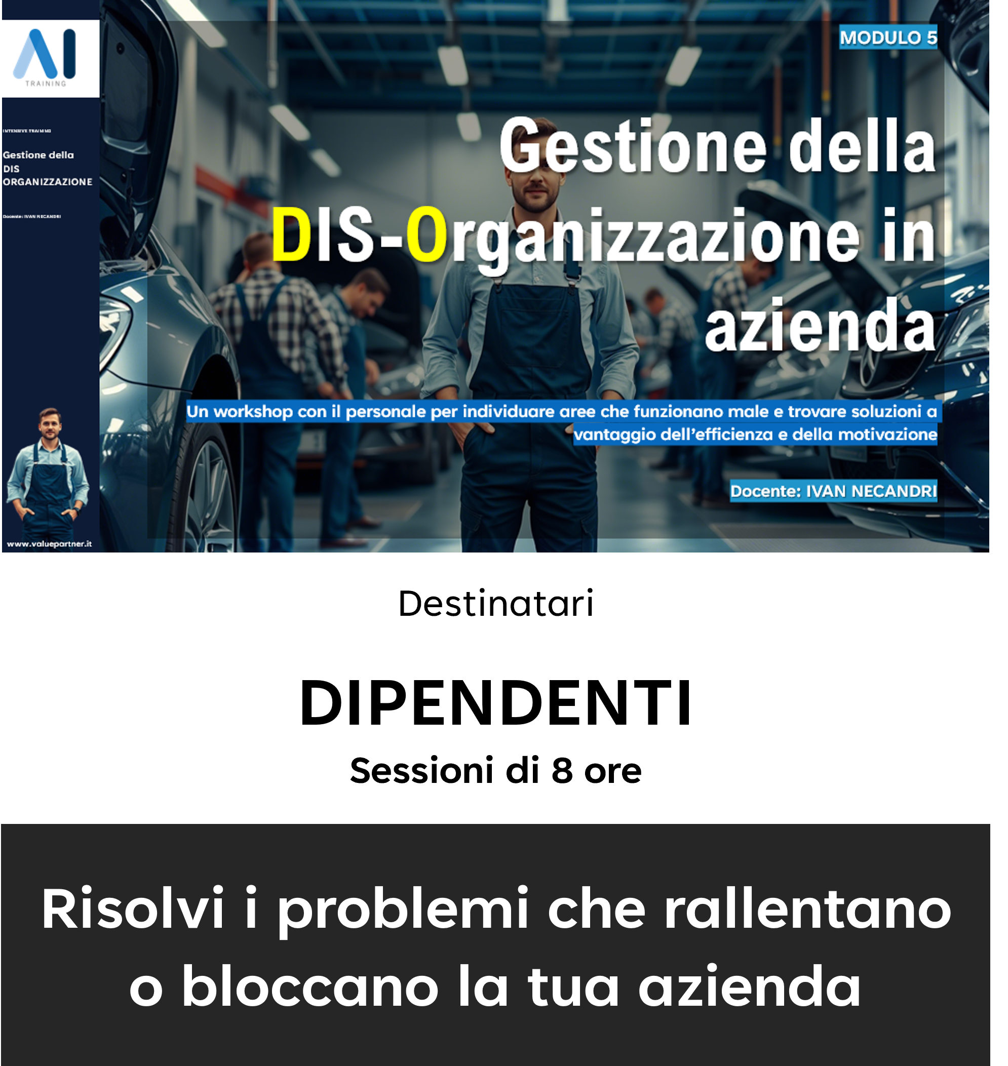AI Training è un'offerta di formazione in presenza che interessa tutte le figure di una PMI con forte specializzazione nel settore Automotive.